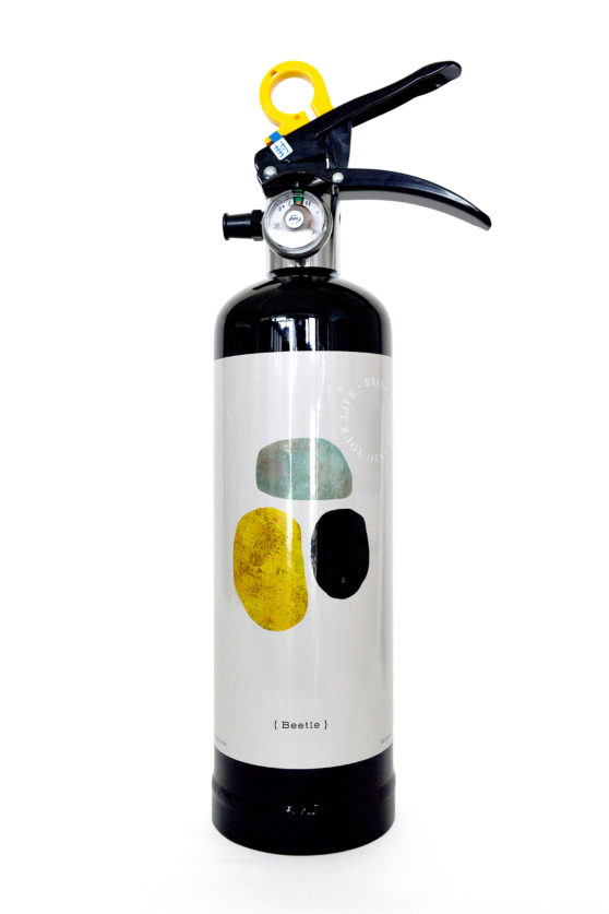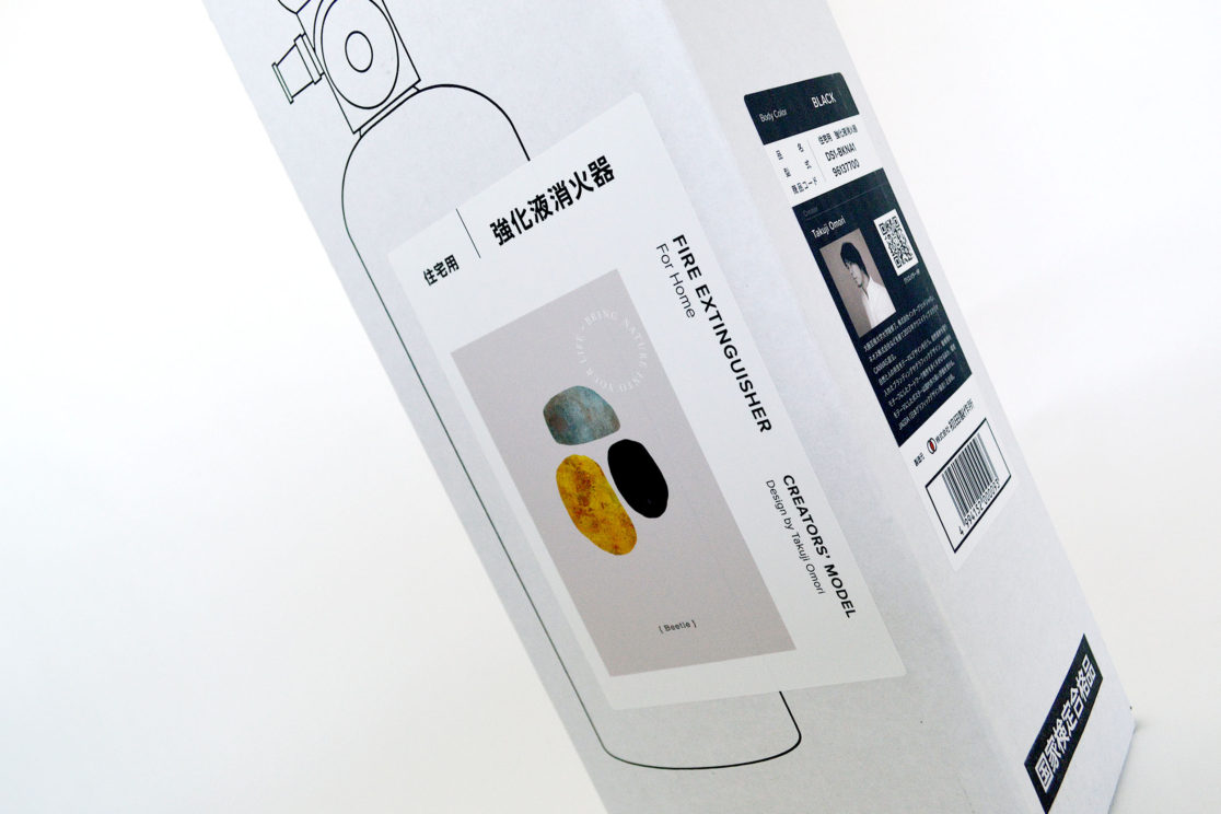 またCANVASではデザイン消火器全体のフォーマットとボックス(パッケージ)のデザインも担当しています。外観からアートの種類が一眼でわかるようにラベルを配置し、そのままギフトにも使えて、なおかつ消火器としての安心感、信頼感を感じさせる佇まいを配慮してデザインしました。