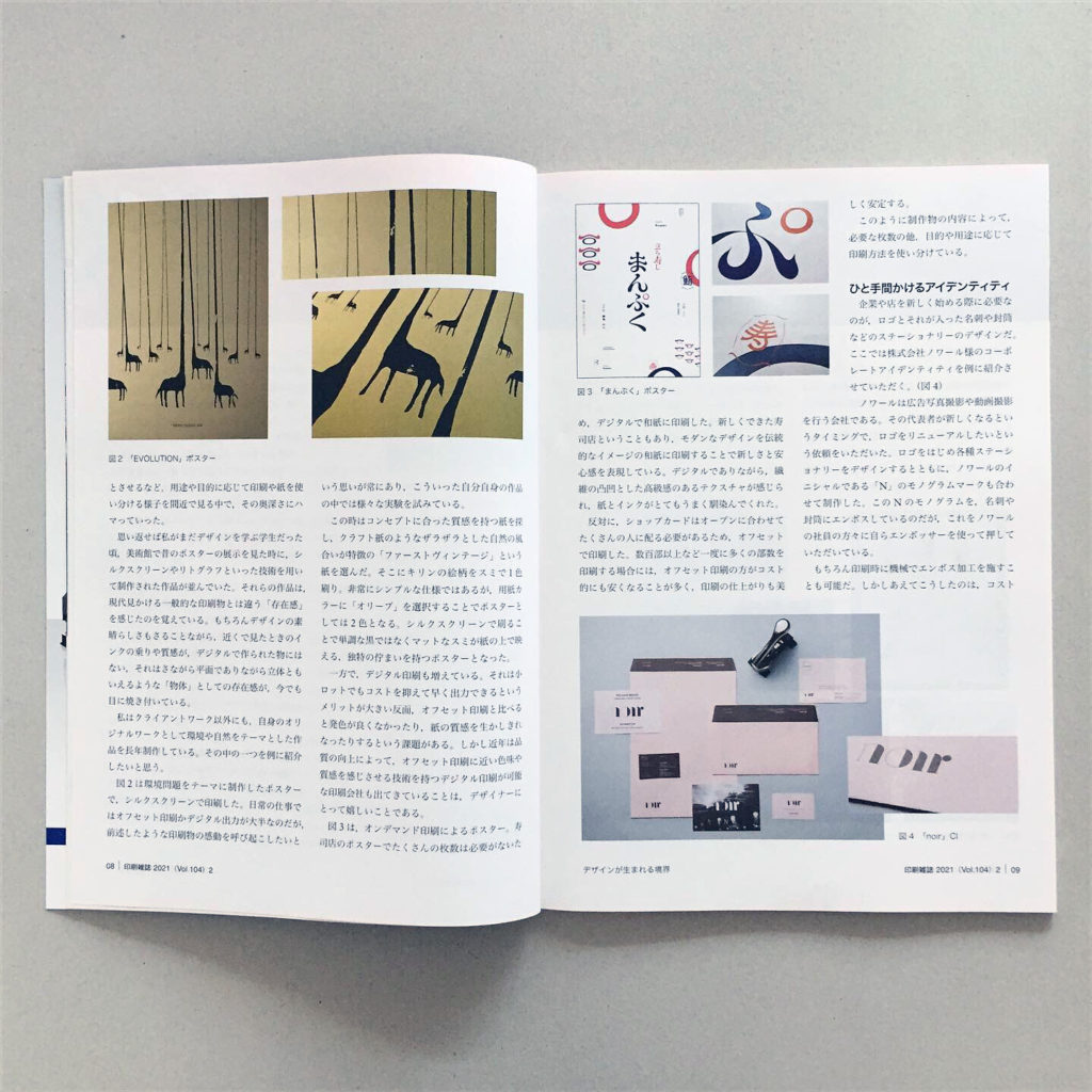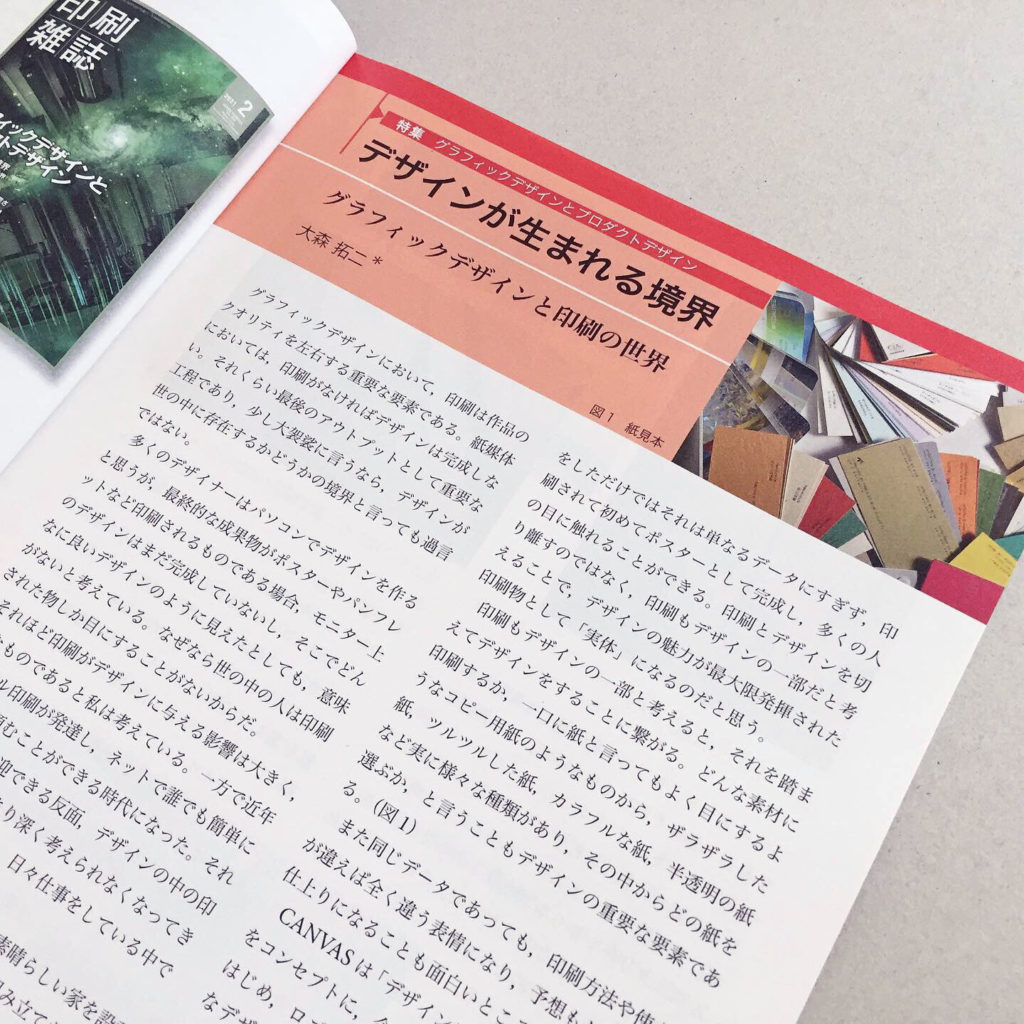 『印刷雑誌』に寄稿しました 2021年8月29日 Announcement, Press 印刷学会出版部発行の月刊『印刷雑誌』2021年2月号に「デザインが生まれる境界」と題した記事を寄稿しました。『印刷雑誌』は1918年創刊の印刷に関わるデザイン・科学・技術専門紙です。 グラフィックデザインと印刷の関わりや様々な印刷方法の選び方を、これまでの制作事例を交えて4ページの記事を書いております。 contribution design printing 印刷 寄稿 Share: Older Post 〈コラム〉地域おこしとデザイン Newer Post 制作事例を更新しました | トラベラーズクラフト